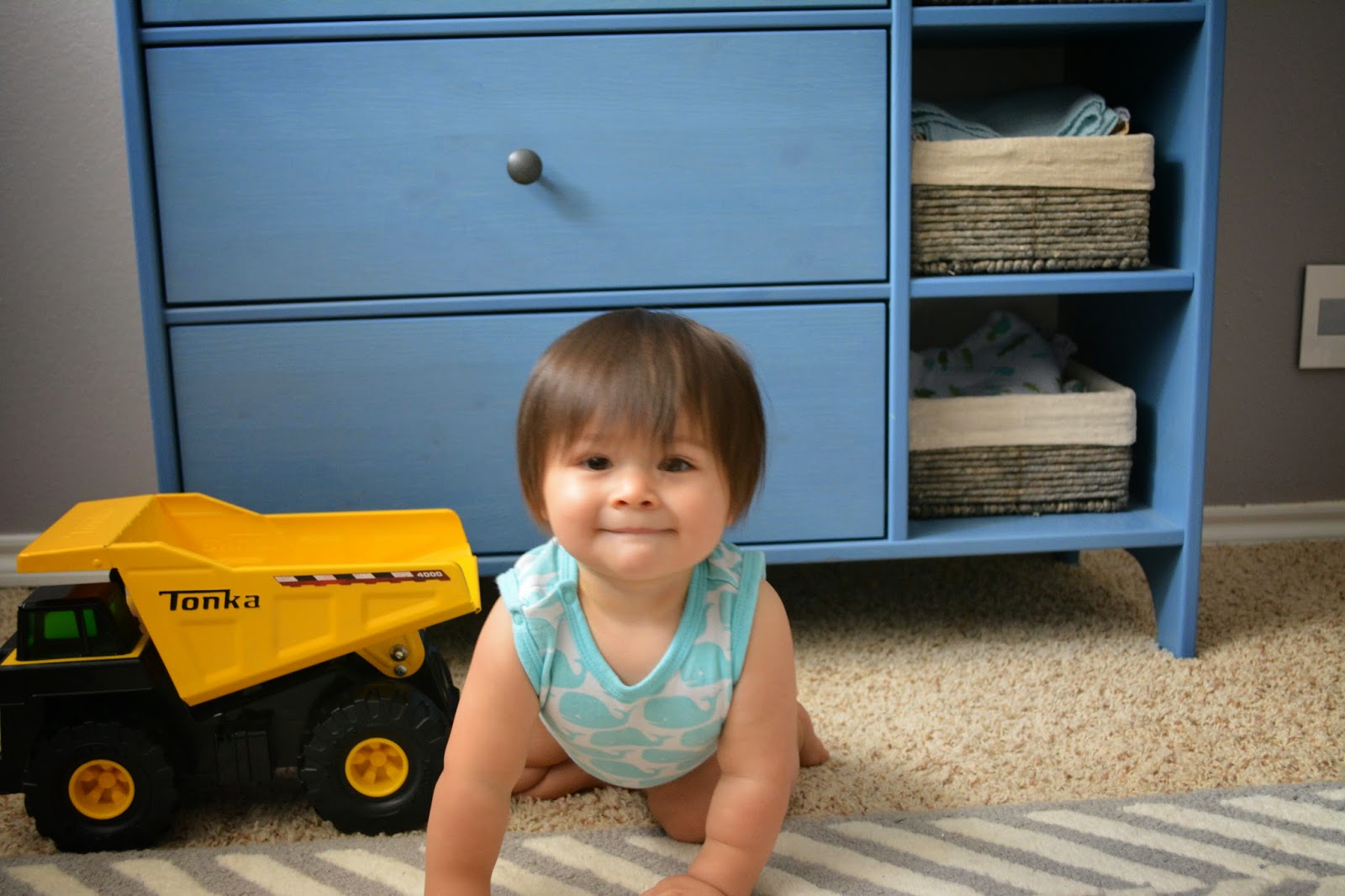 He is not very interested in purified baby food anymore... He mostly just wants little pieces of whatever we're having. Loves little bites of Chick-Fil-A nuggets. (Smart boy!) We are still nursing! One more month, and I'll have made my goal of 1 Year of Breastfeeding! I think it was all about determination. I can definitely feel my body tiring of breastfeeding... I feel like I am really struggling to make anywhere near enough milk for him. He gets quite a few formula bottles when I work on the weekends. But when I'm off, I can feed him enough. Oh well, we start introducing whole milk next month anyways. He loves minion Teddy Grahams, and chocolate teddy Grahams!